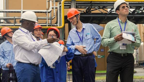 7月5日上午,OPCW視察組和國家代表、省市陪同人員在聽取核查前情況介紹后,共同前往公司生產(chǎn)區(qū)域進(jìn)行了現(xiàn)場核查。視察組一行在察看企業(yè)總平面布置之后,分別對(duì)生產(chǎn)裝置、工藝流程等作了詳細(xì)了解,核實(shí)了企業(yè)生產(chǎn)經(jīng)營中的相關(guān)記錄、原始臺(tái)賬、報(bào)表等,公司陪同人員客觀、專業(yè)的回答了核查組提出的各類問題。